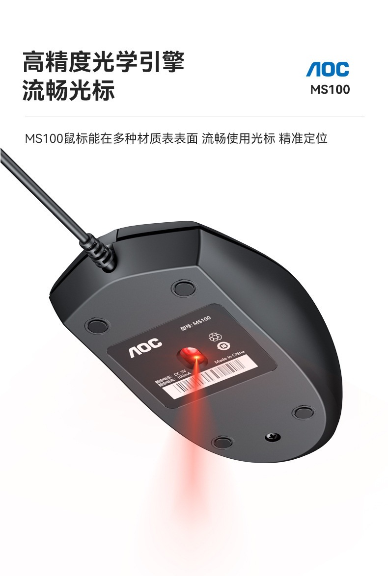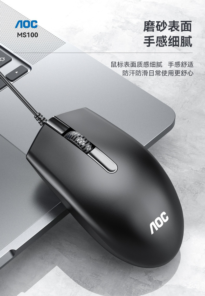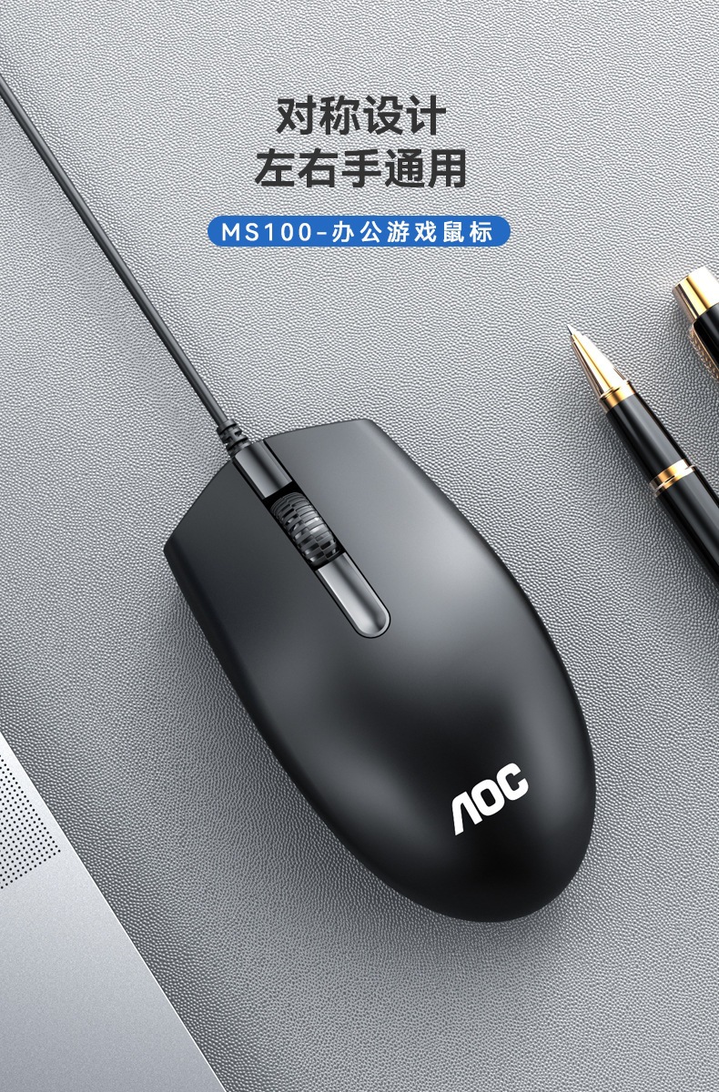 AOC MS100有线USB鼠标台式机笔记本电脑商务办公家用游戏鼠标批发