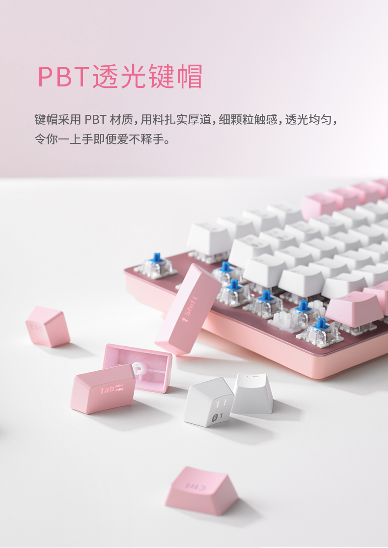 雷柏V500PRO机械键盘多模无线蓝牙2.4G樱花粉白双拼青茶红黑轴游