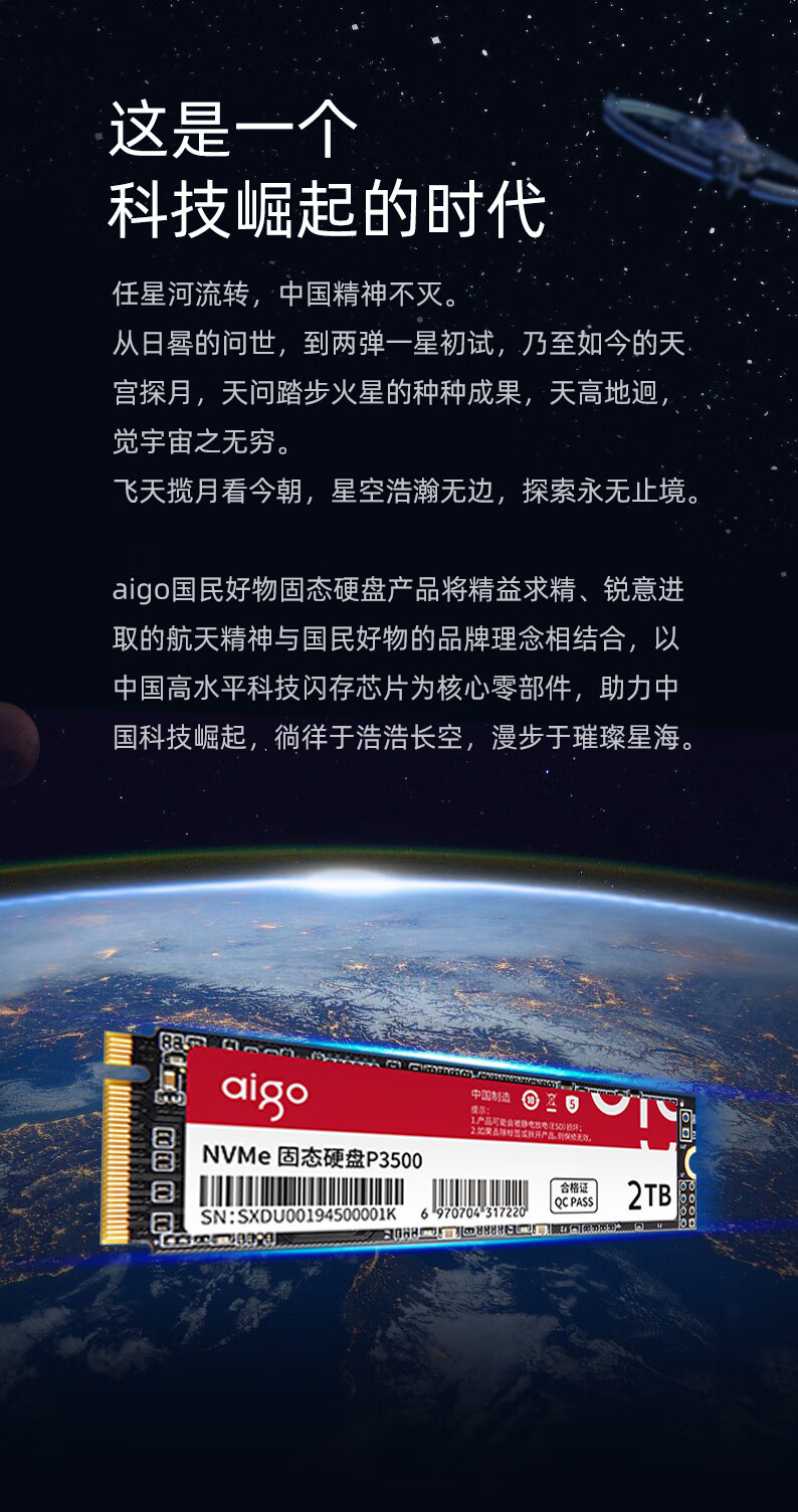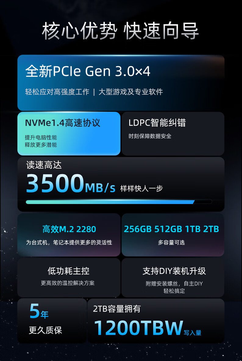 爱国者P3500 SSD固态硬盘 M.2(NVMe协议) PCIe四通道适用笔记本
