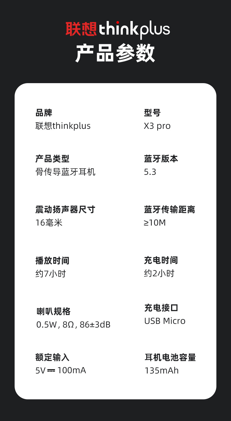 Lenovo联想X3PRO骨传导无线蓝牙耳机挂耳式不入耳适用运动骑行