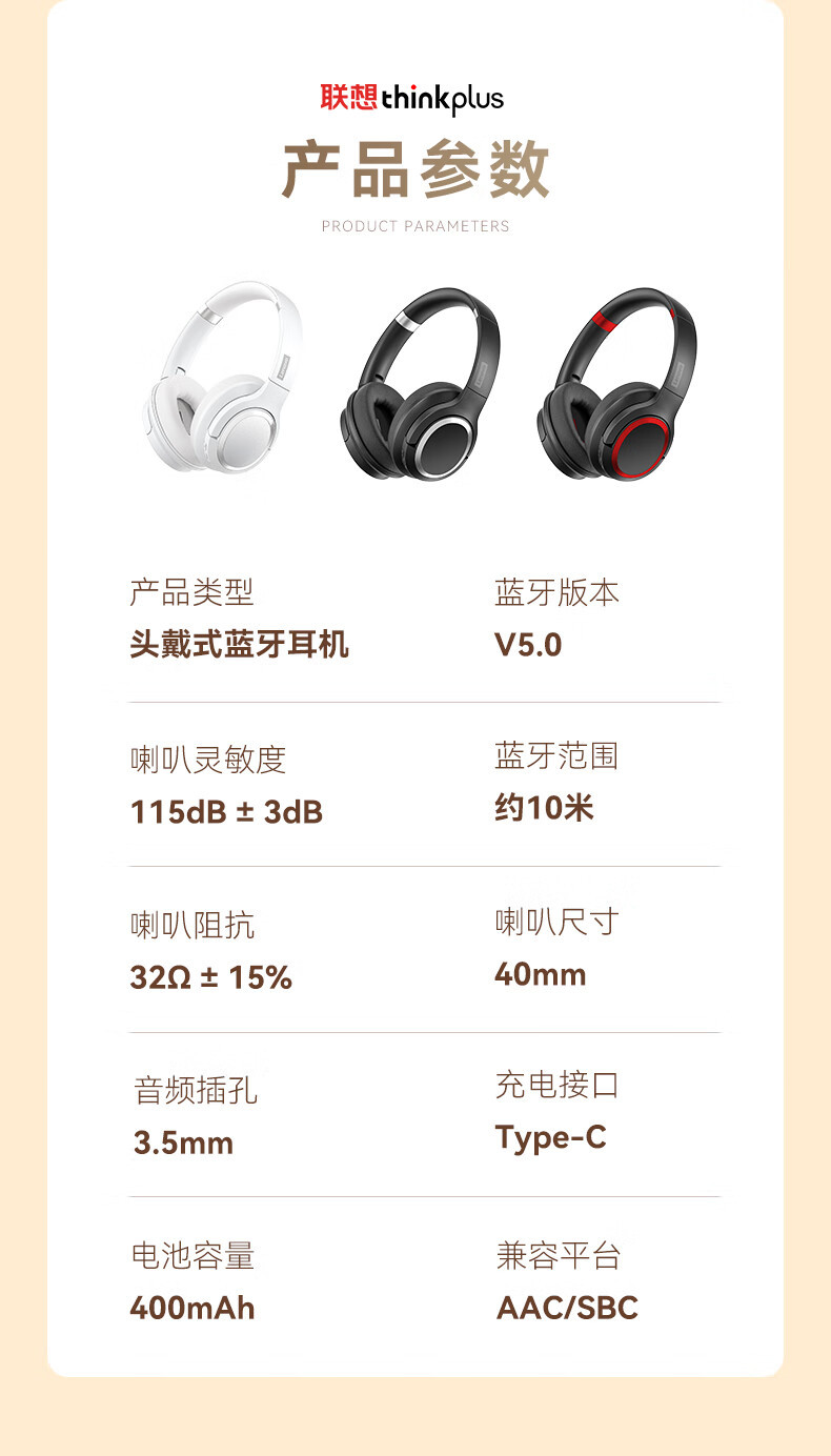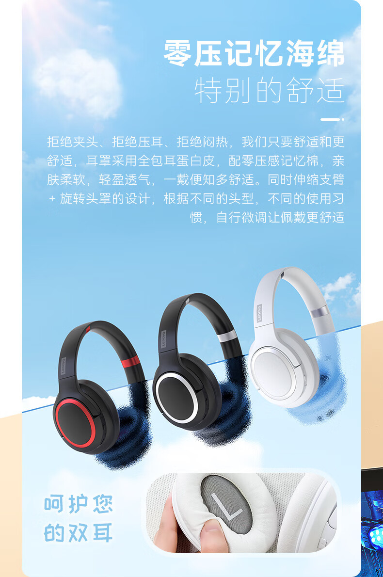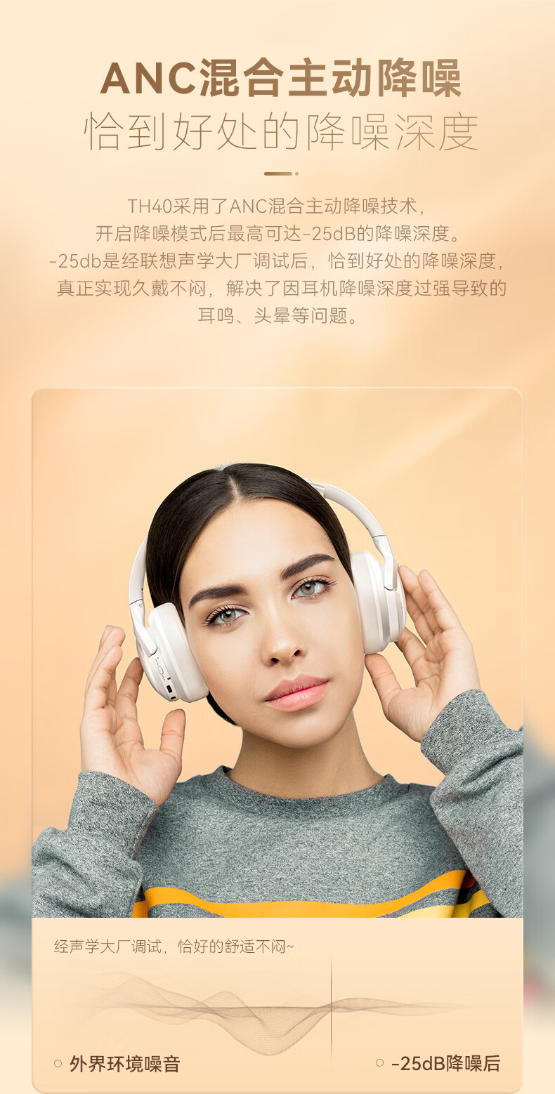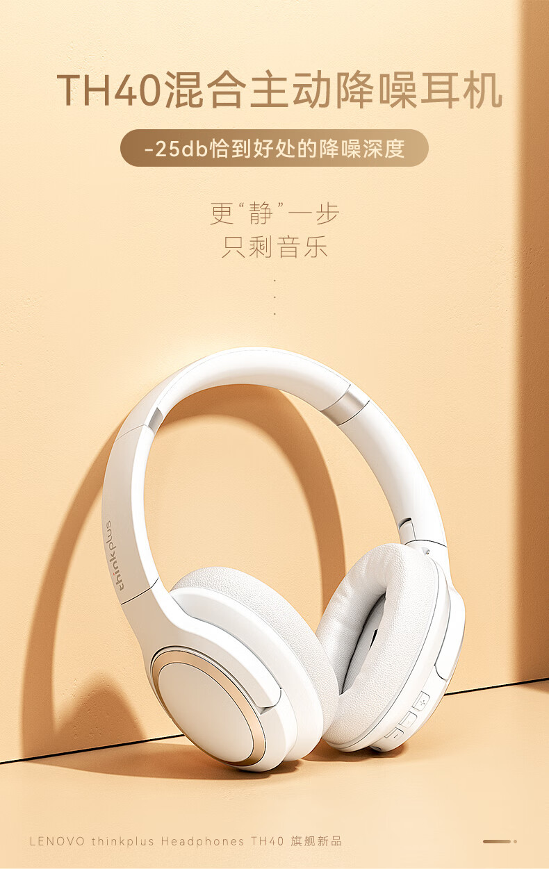 联想TH40蓝牙耳机无线加有线主动降噪音乐长续航耳机