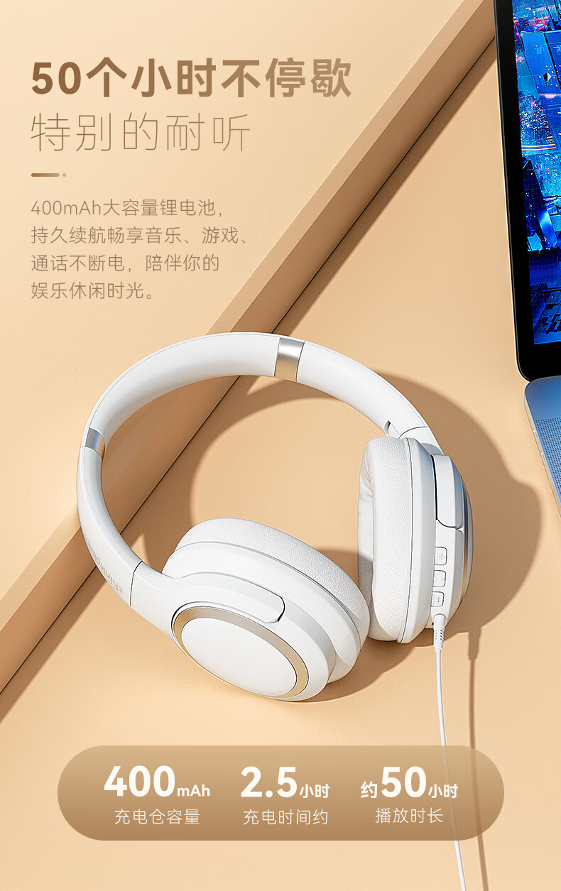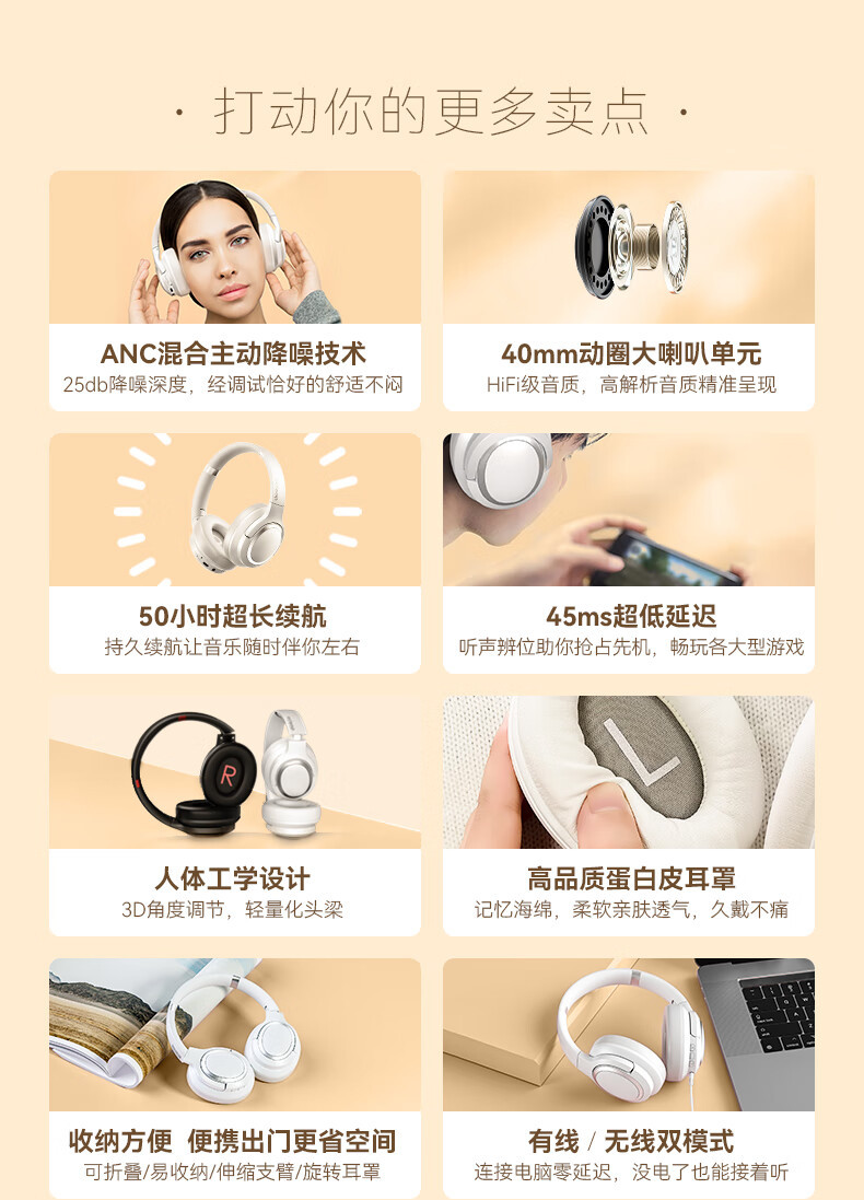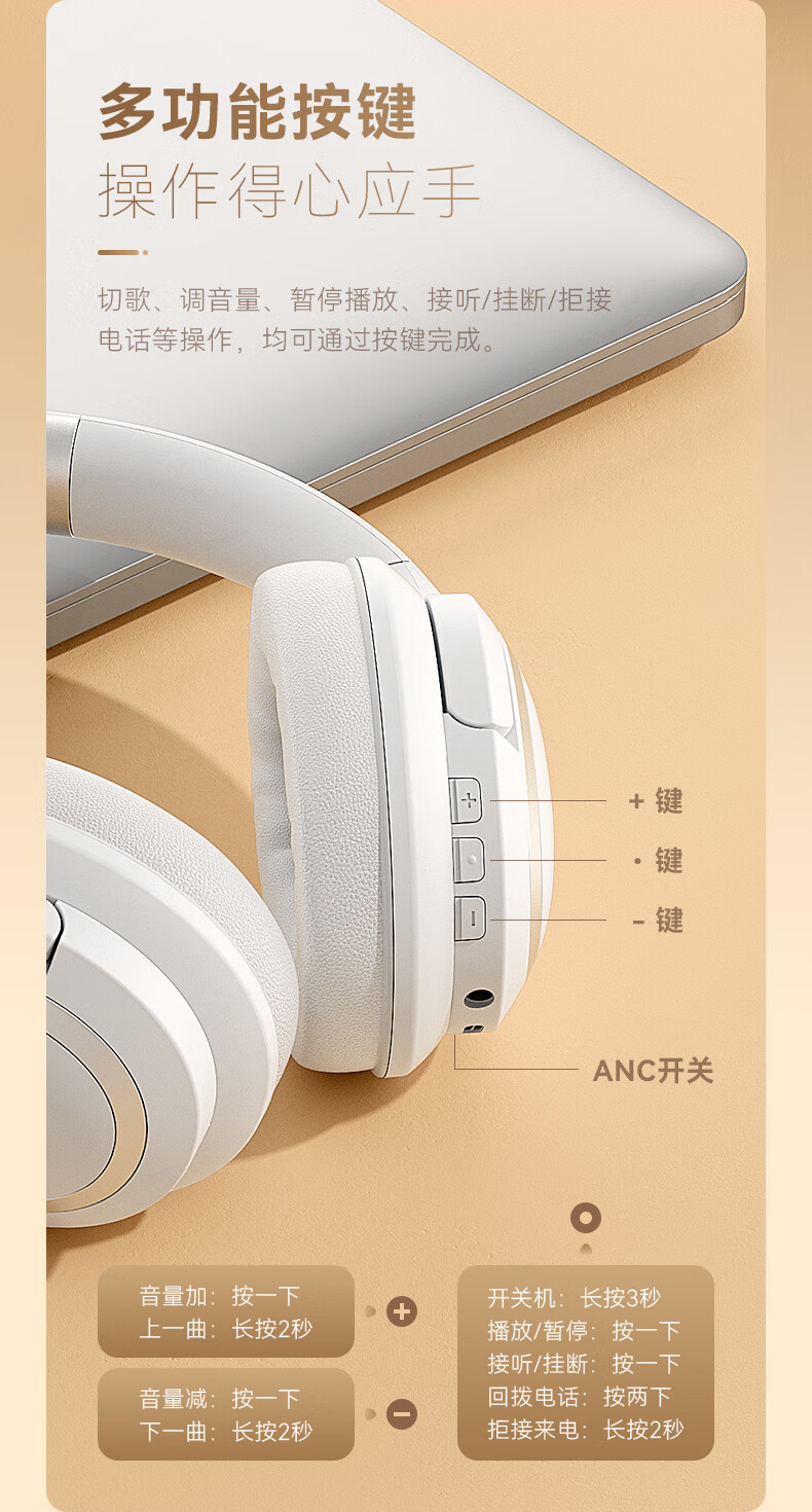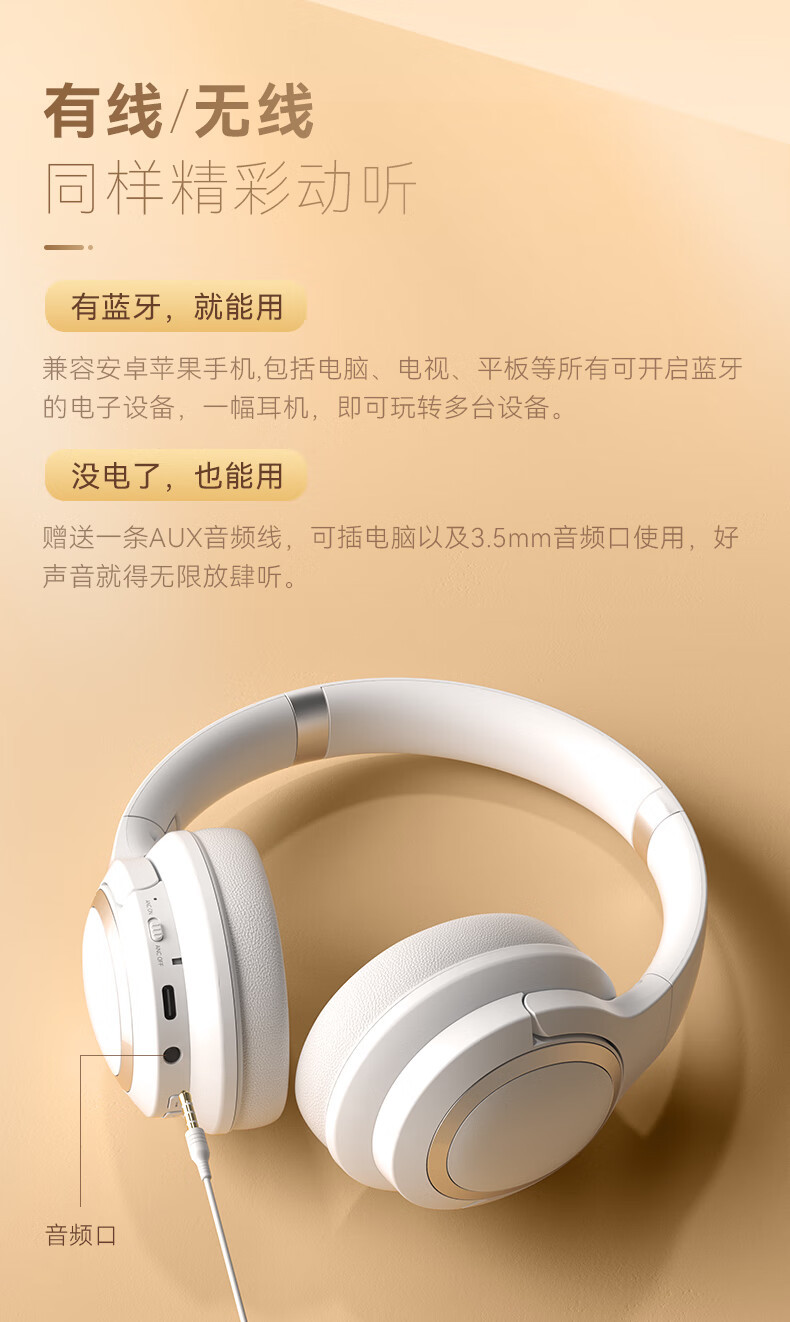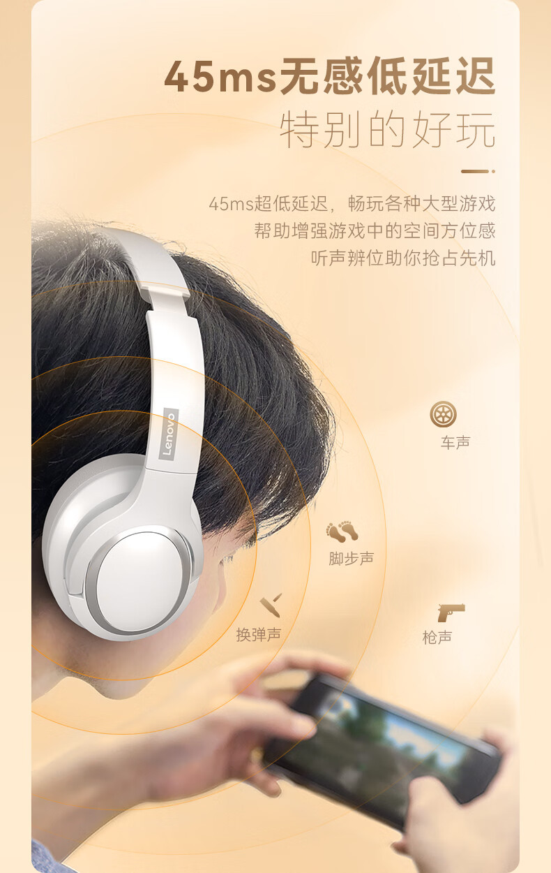 联想TH40蓝牙耳机无线加有线主动降噪音乐长续航耳机