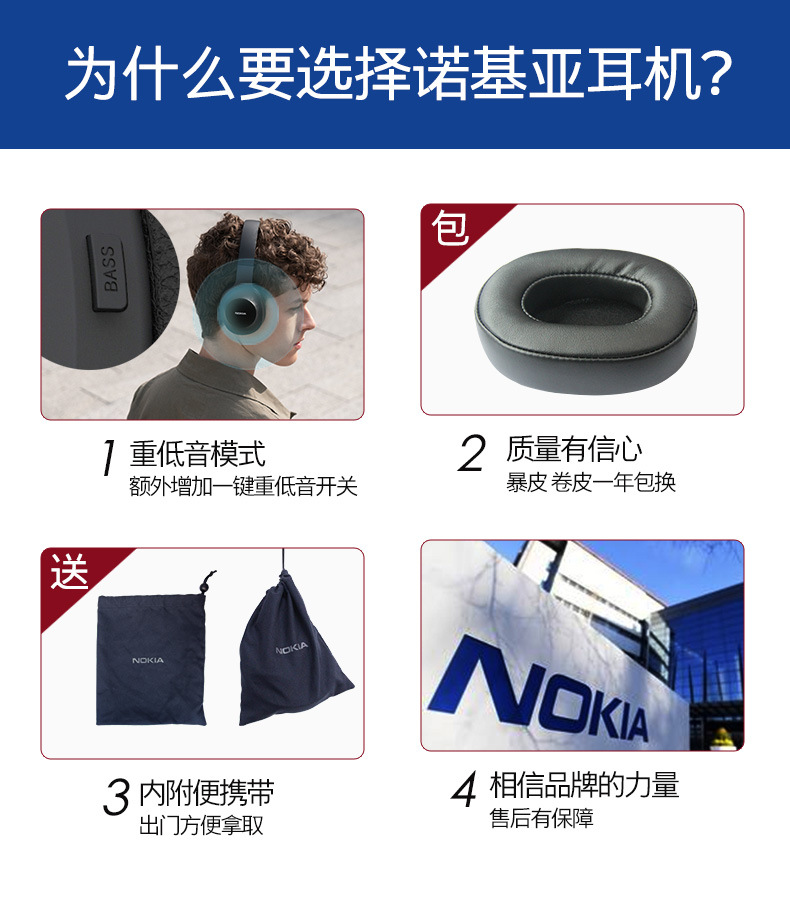 Nokia适用诺基亚E1200无线蓝牙耳机头戴式电脑有线耳麦游戏耳机