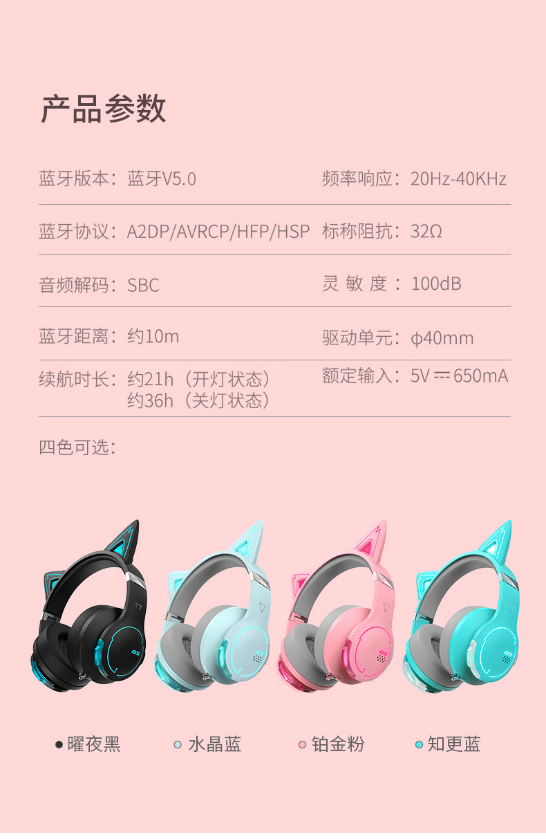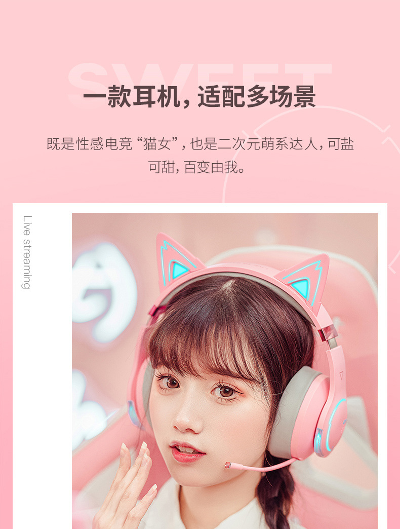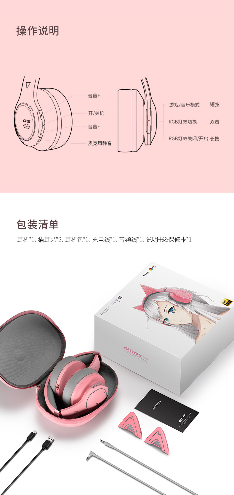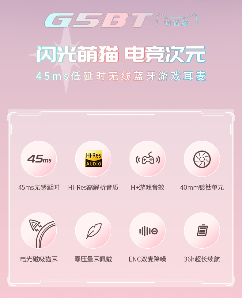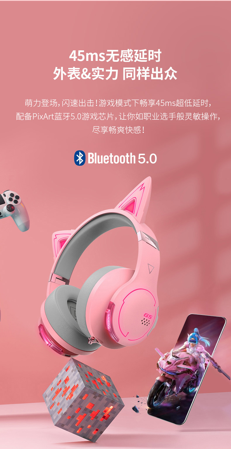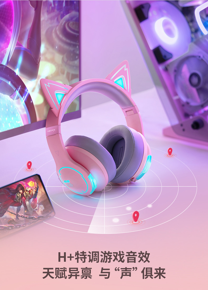 漫步者HECATE G5BT萌猫版头戴蓝牙游戏耳机发光猫耳主播网红耳机